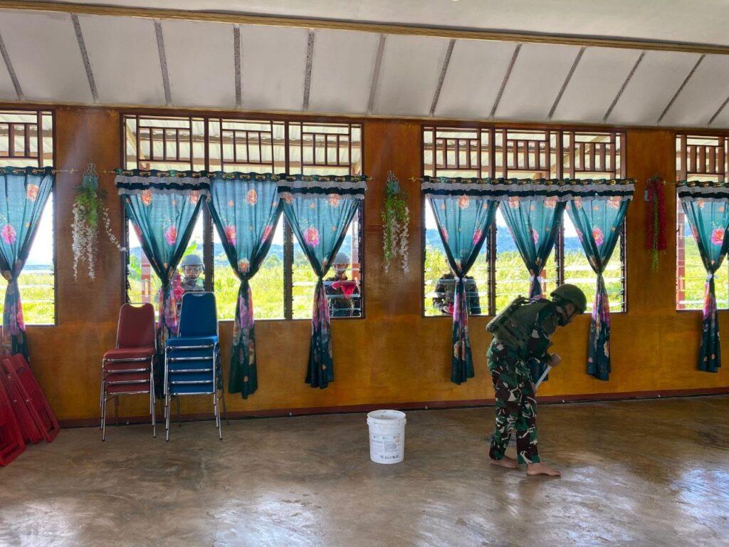 Menyampaikan bahwa kegiatan ini merupakan bentuk kepedulian TNI terhadap sarana ibadah sekaligus wujud nyata kedekatan Satgas dengan masyarakat di wilayah binaan. “Melalui karya bakti ini, kami ingin hadir membantu masyarakat serta mempererat tali silaturahmi dengan seluruh elemen, termasuk tokoh agama dan jemaat gereja,” ujarnya.