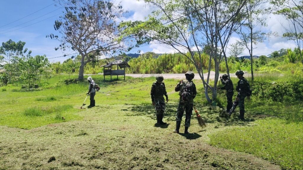 Papua – Karya bakti TNI untuk lingkungan sehat gotong royong antara prajurit TNI dan masyarakat untuk membersihkan, merapikan, dan memperbaiki lingkungan demi menciptakan tempat tinggal yang bersih, sehat, nyaman, serta mempererat kebersamaan dan kesadaran warga akan pentingnya menjaga lingkungan. (14/1/2026)